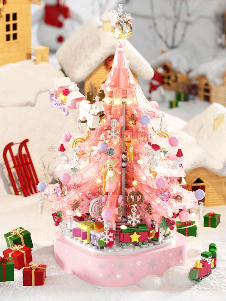 Pink crystal christmas tree clearance, 675pcs Pink Crystal Christmas Tree Music Box Building Blocks, Creative Christmas Train, Teddy Bear, Star, Reindeer, Sled Moc Bricks Diy Fantasy Display Toys, Ideal Christmas Gift For Girlfriend | SHEIN UK clearance