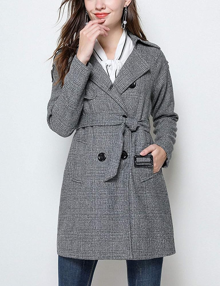 Grey plaid peacoat clearance, Amazon.com: PUWEI Women's Belted Waist Loose Long Lapel Plaid Wool Blend Trench Pea Coat(0631-Grey-XS) : Clothing, Shoes u0026 Jewelry clearance