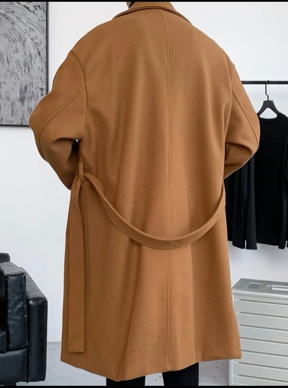 - Men lapel collar drop shoulder belted overcoat sold