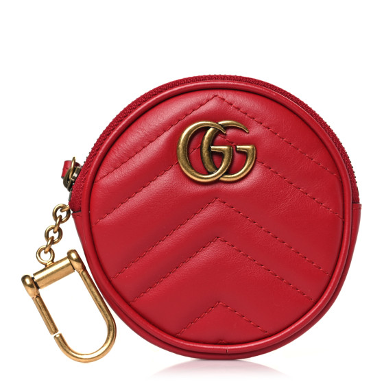 Gucci round coin purse clearance, GUCCI Calfskin Matelasse GG Marmont Round Coin Purse Hibiscus Red 1396291 | FASHIONPHILE clearance