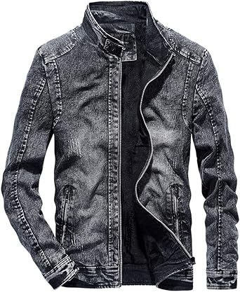 High collar denim jacket clearance, HOW'ON Men's Warm Fur Collar Sherpa clearance
