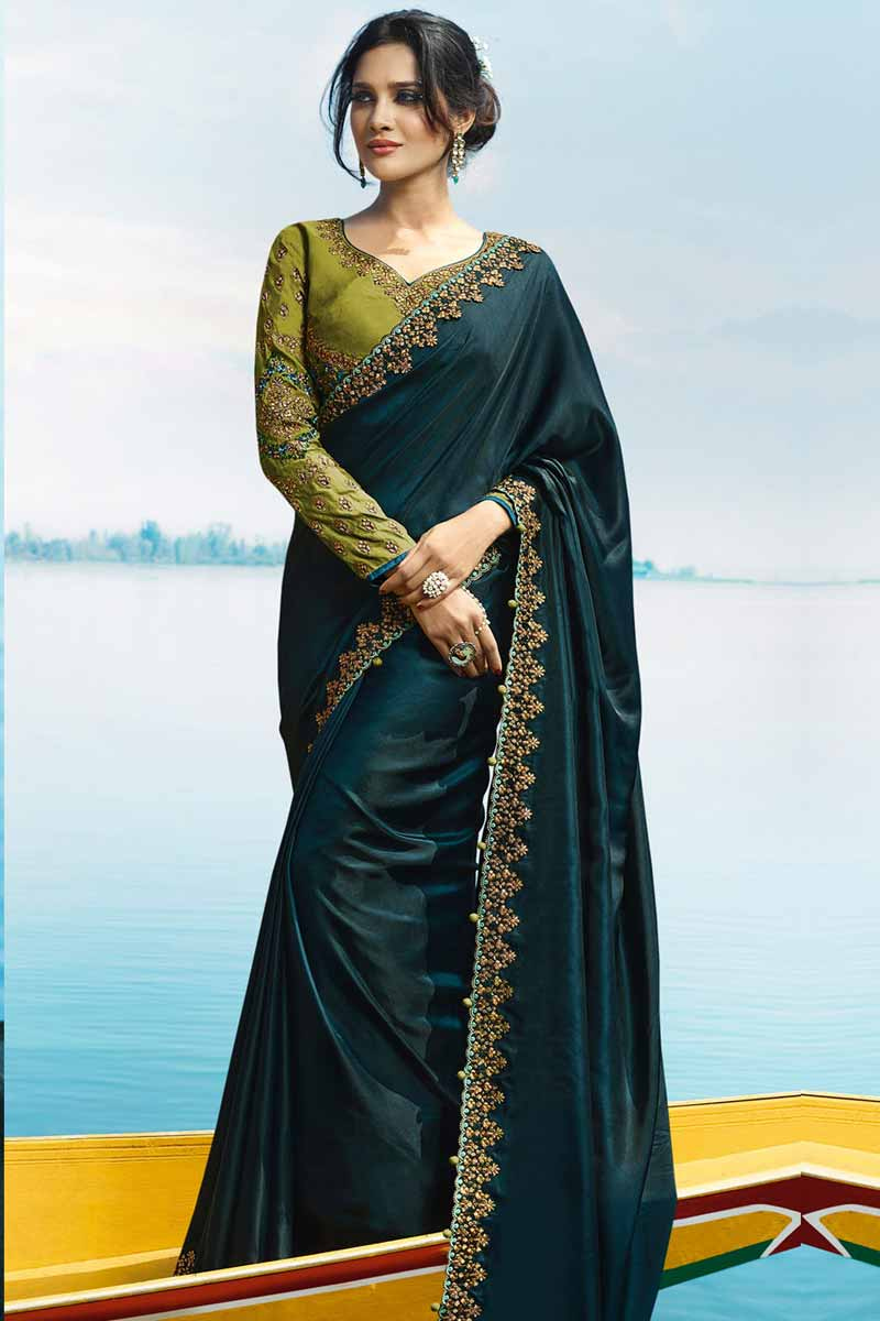 - Royal blue saree with green blouse sale online
