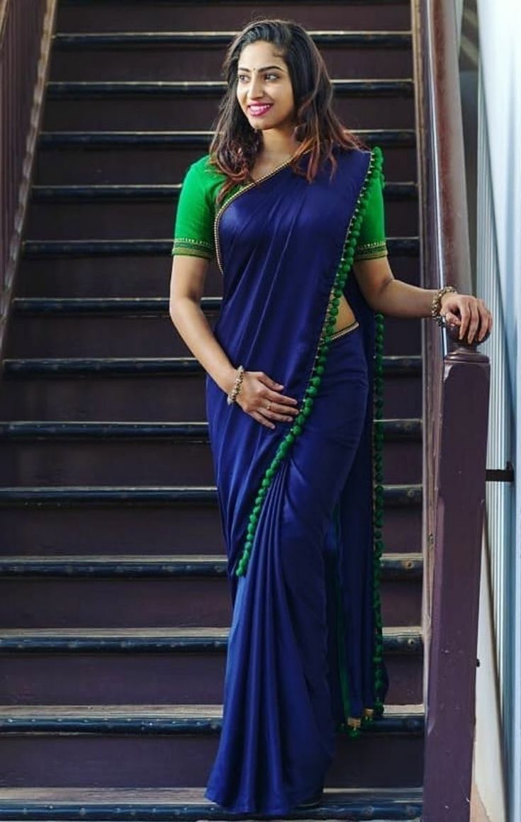 - Shopping Royal blue saree with green blouse