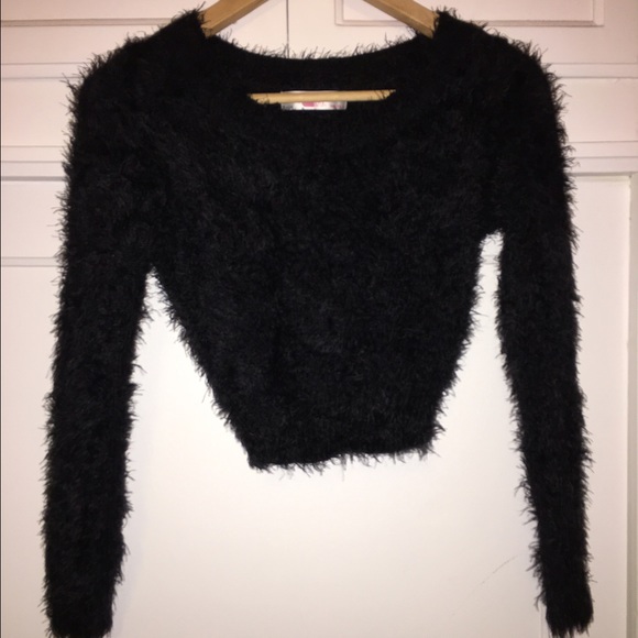- Fuzzy long sleeve crop top outlet