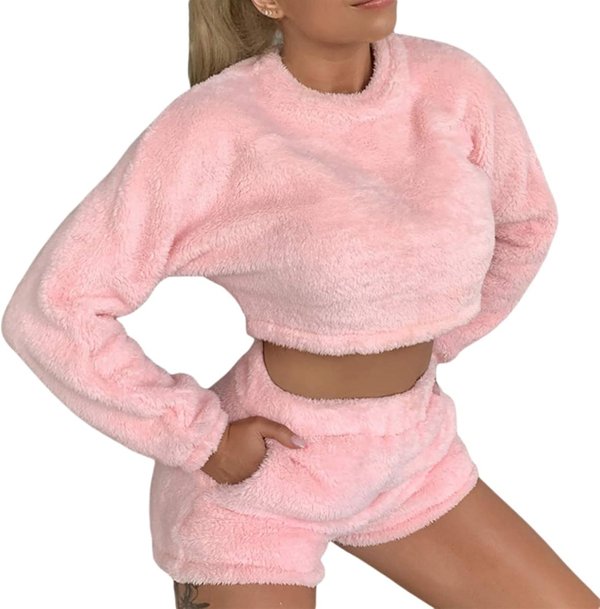 - Fuzzy long sleeve crop top