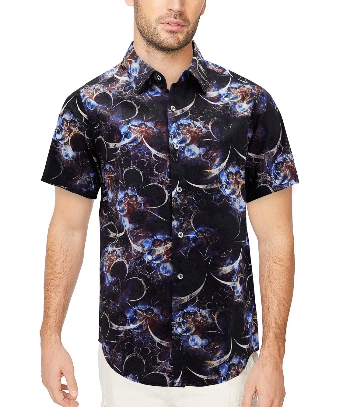 3xl short sleeve dress shirts clearance, VKWEAR Mens Cotton Short Sleeve Casual Button Down Floral Pattern Dress Shirt - Cotton Blend - 3XL clearance