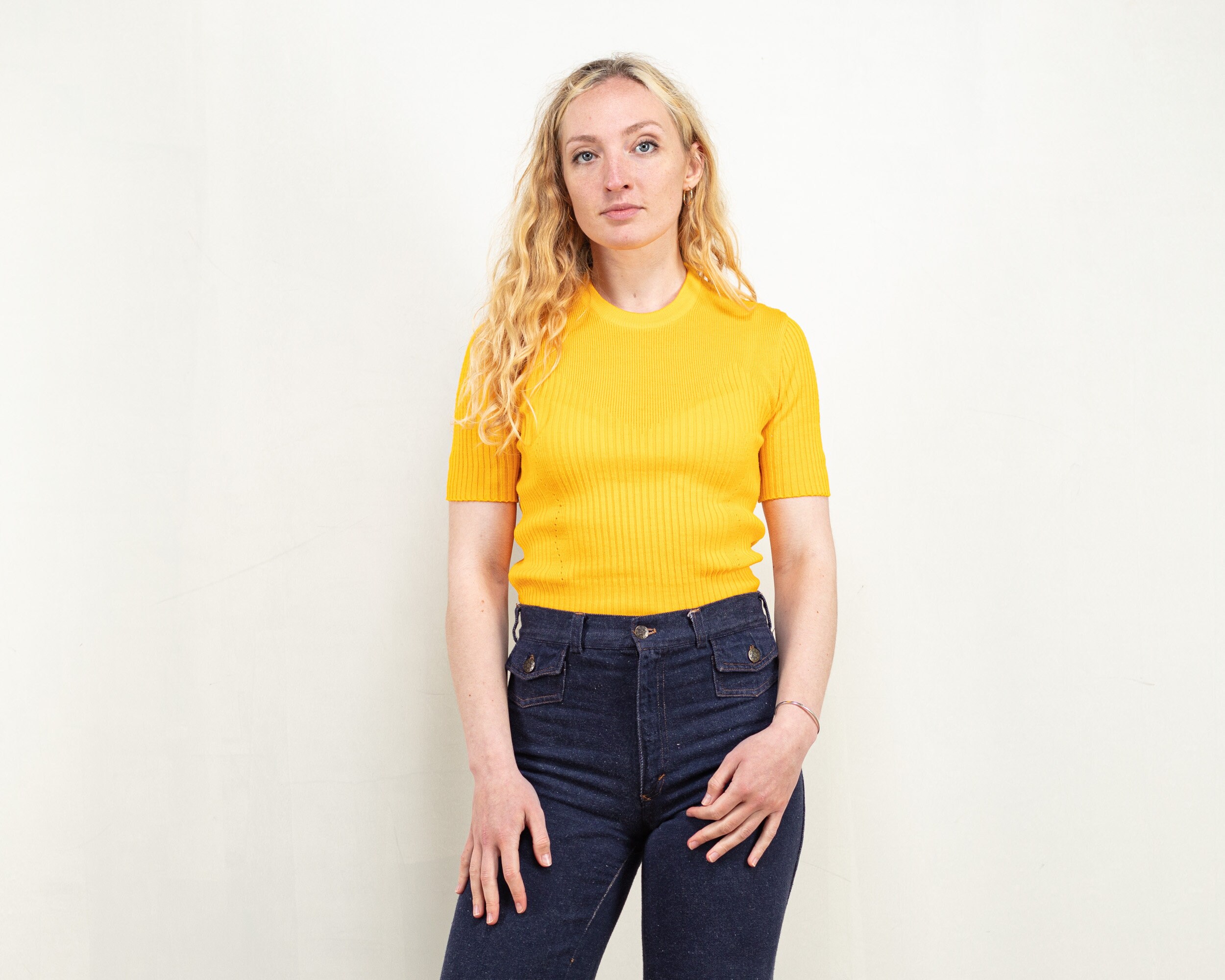 Yellow knit shirt clearance