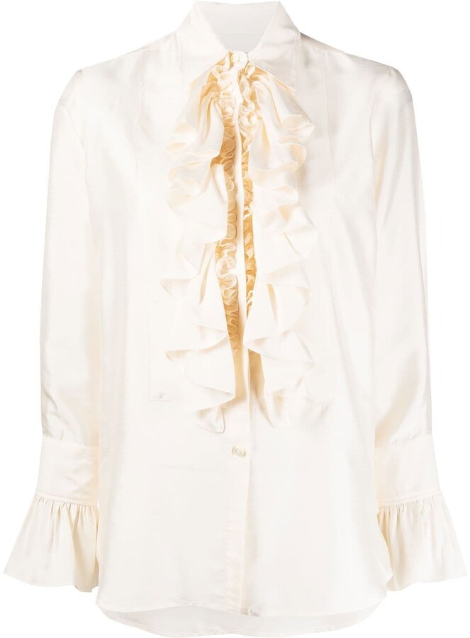 - Silk ruffle blouse ivory shop