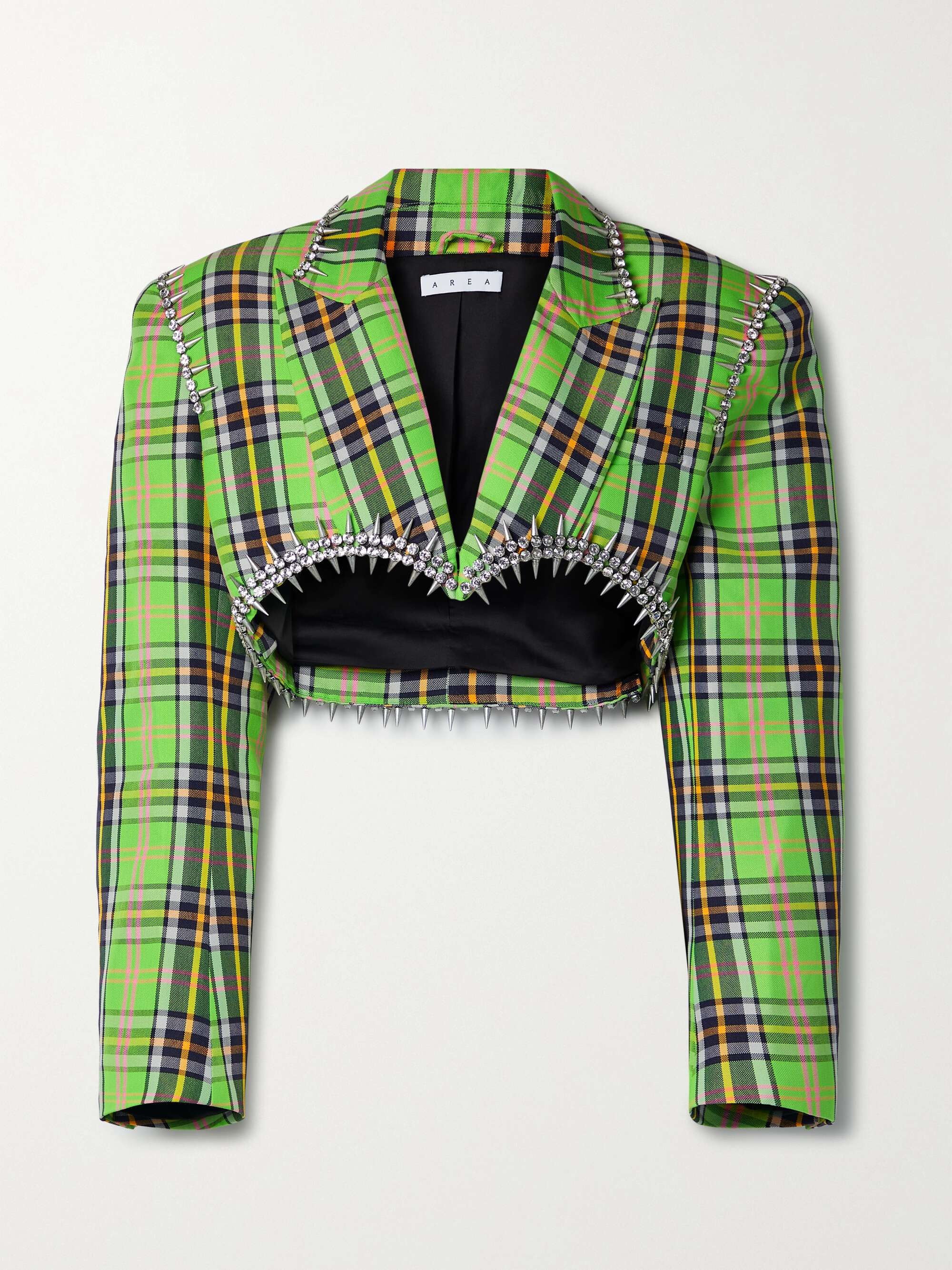 Plaid cropped blazer clearance, AREA Cropped embellished checked wool-blend blazer | NET-A-PORTER clearance