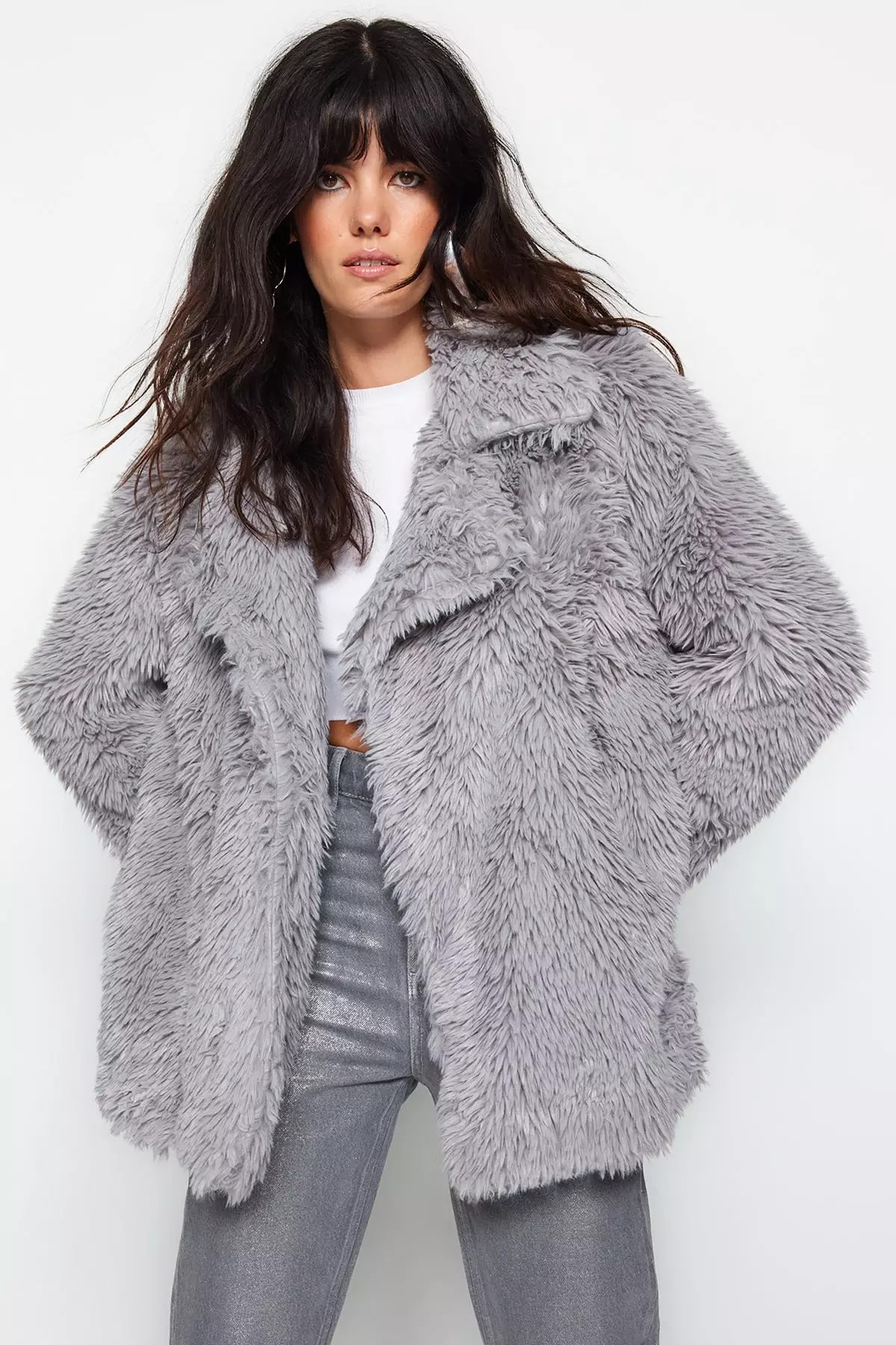 Light gray coat women's clearance, Buy Trendyol Light Gray Oversize Wide-Cut Fur Coat 2023 Online | ZALORA Singapore clearance