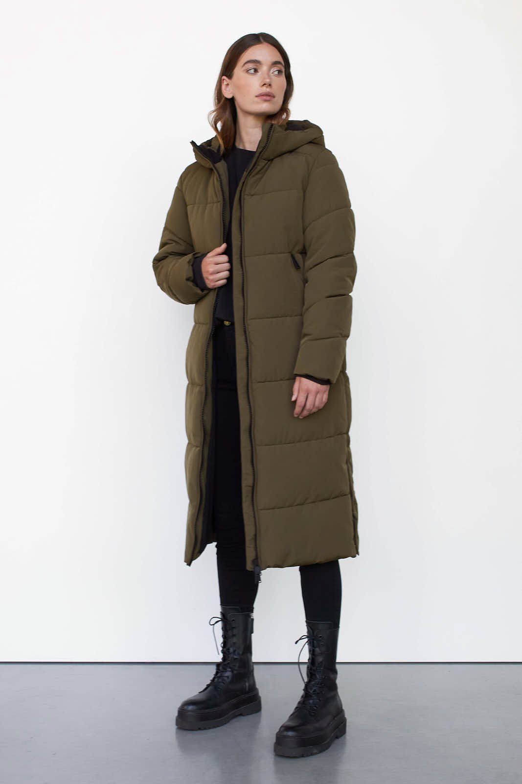 - Brown puffer coat long