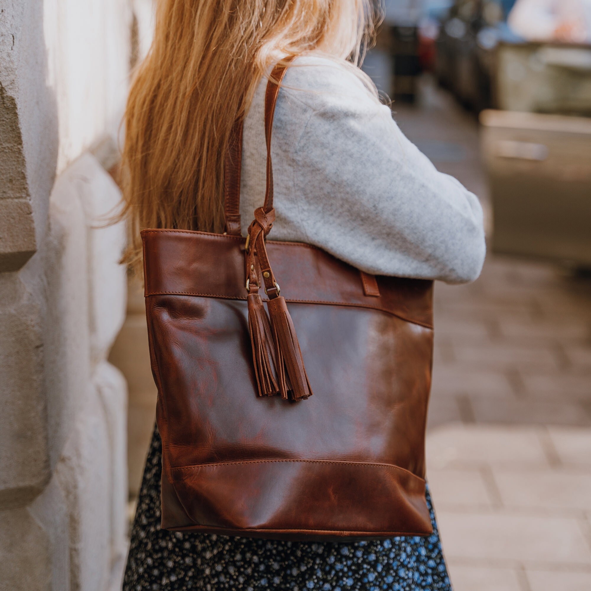 Vegetable tanned leather tote bag clearance