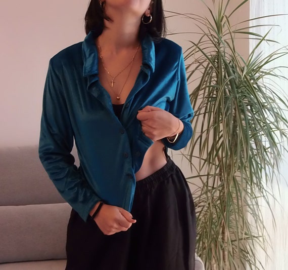 - Shopping Blue velvet button down shirt