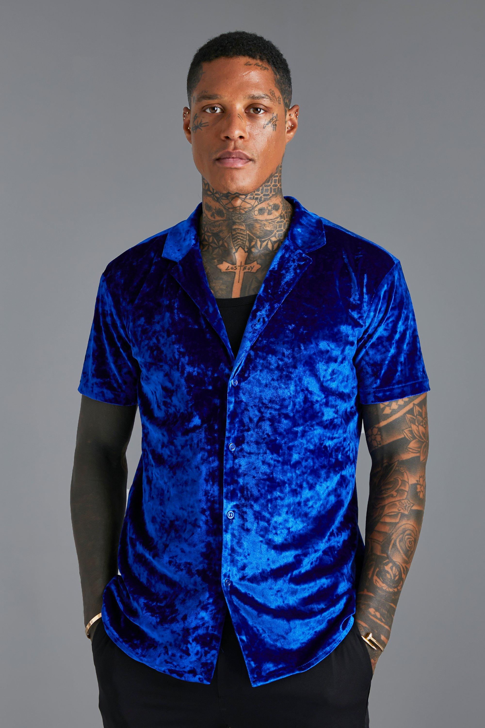- Blue velvet button down shirt shop