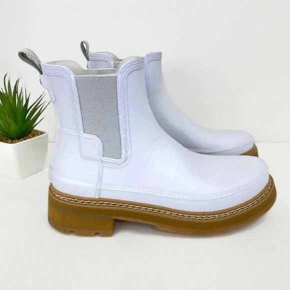 Hunter refined stitch chunky ankle boots in white clearance, Hunter Refined stitch chunky ankle clearance