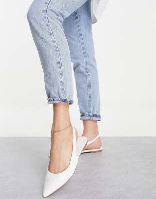 White flat slingback shoes clearance, ASOS Design Wide Fit Lala Pointed Slingback Flats in White clearance