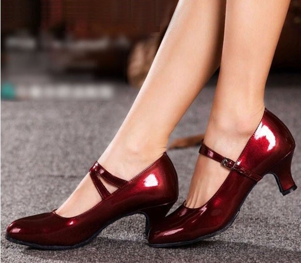 - Red patent shoes ladies