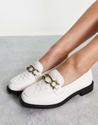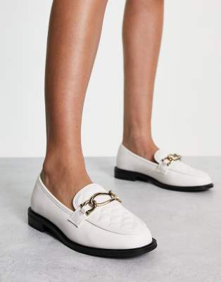 River island cream loafers clearance, River Island Quilted Chain Detail Loafer in cream-White clearance