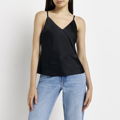 - Black satin strappy top sale online