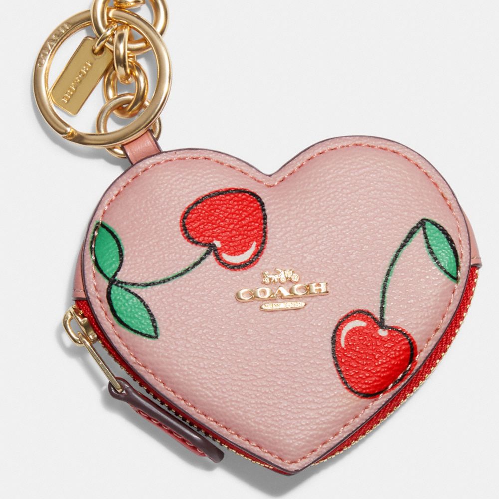 Coach cherry coin purse clearance, NWT CF160 Coach Heart Shaped Bag Charm Coin Purse Cherry Print Powder Pink | eBay clearance