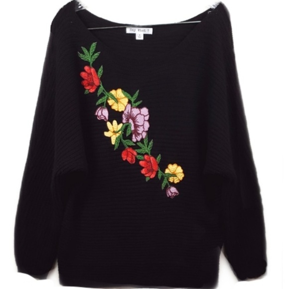 Sweater flower design clearance, Say What Black Sweater With A Floral clearance