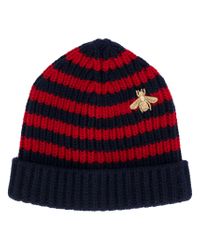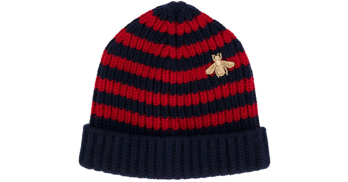 Gucci bee beanie clearance, Gucci Wool Bee Striped Beanie Hat in clearance