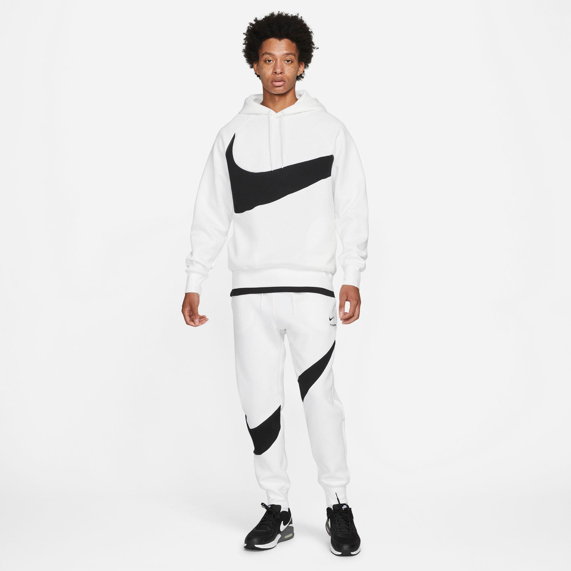 Nike swoosh fleece clearance, Men's Nike White/Black Sportswear Swoosh Tech Fleece Pullover Hoodie - XL clearance