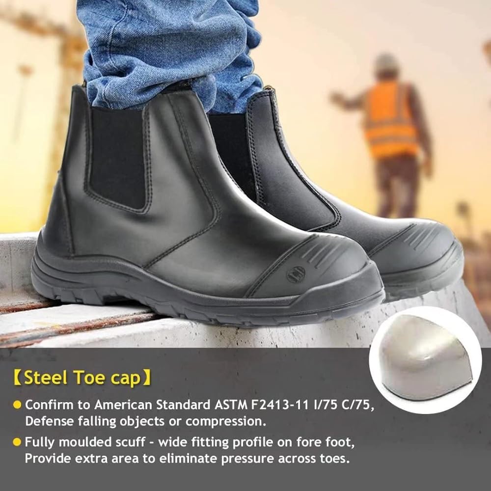 Mens waterproof slip resistant work shoes clearance, ROCKTURTLE Slip on Work Boots for Men clearance