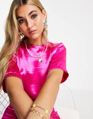 Satin pink crop top clearance, Topshop satin tie back crop tee in pink clearance
