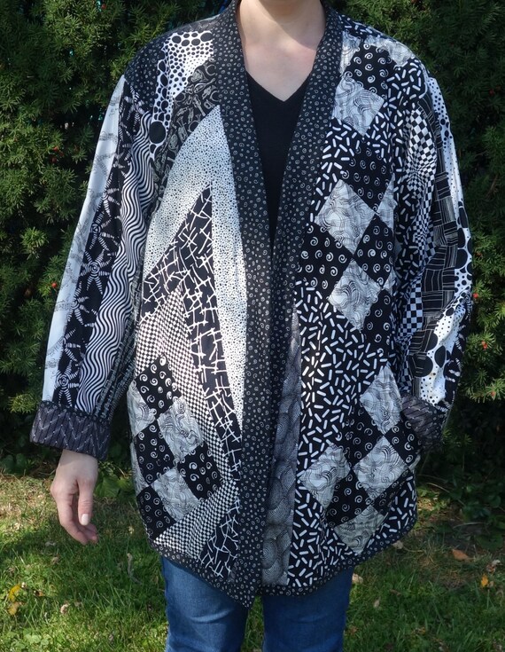 - Black and white patchwork coat shop