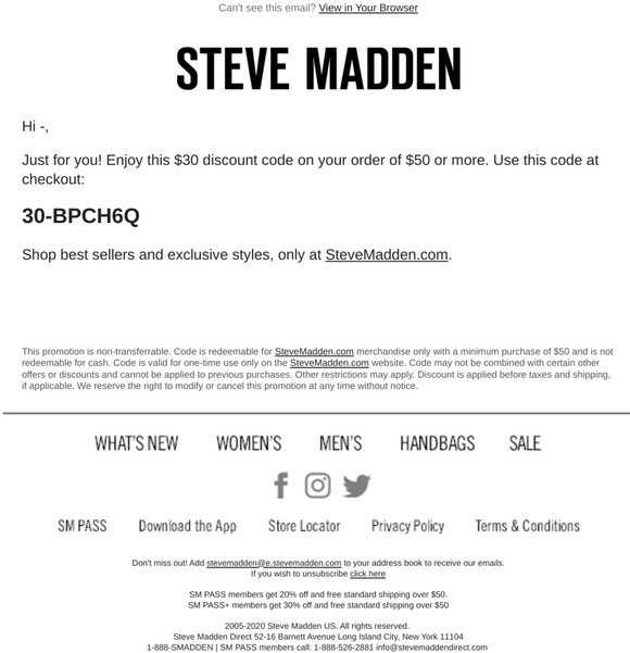- Steve madden 30 off promo code shop