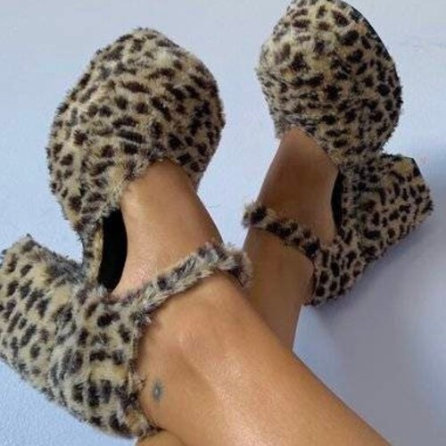 Unif cheetah shoes clearance, Ins Hot Sale Platform Fuzzy Cheetah clearance