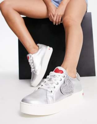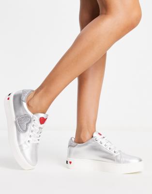 - Love moschino heart sneakers in silver clearance