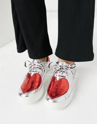 - Love moschino heart sneakers in silver outlet