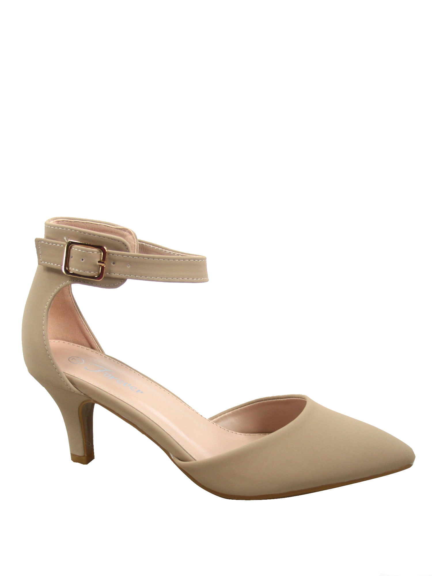 Taupe low heel shoes clearance, Forever Sunrise-39 Women's Ankle Strap Buckle Pointy Toe Stiletto Low Heel Pumps ( Taupe, 8.5 ), Gray clearance