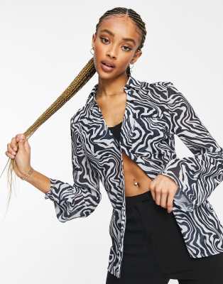 Asos zebra print top clearance, ASOS DESIGN sheer long sleeve top with clearance