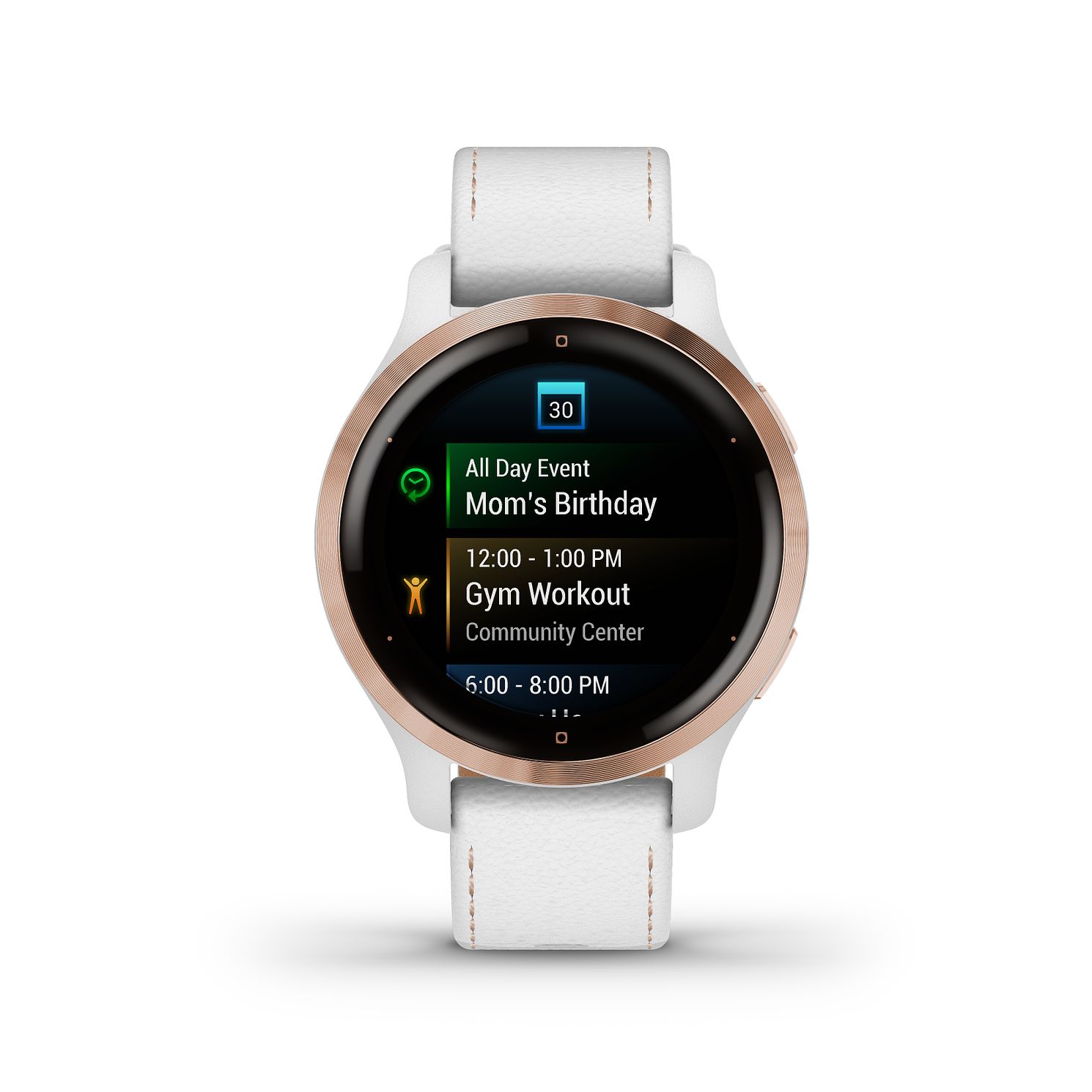 Garmin venu 2s white clearance, Garmin Venu® 2S Rose Gold Stainless Steel Bezel with White Case and Leather Band | AMJ Watches clearance