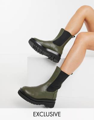 Green chunky chelsea boots clearance, Topshop Kylie chunky chelsea boot in clearance