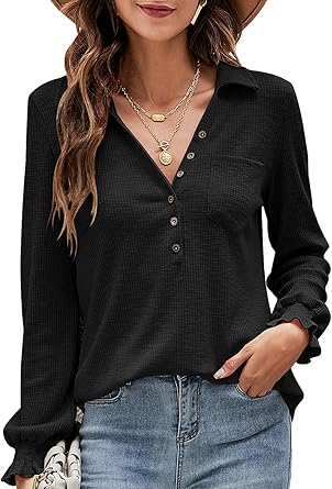 Nice blouses for ladies clearance, EFFAN Womens Blouses Casual V Neck Tops clearance