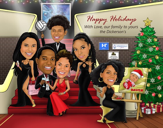 Elegant christmas family photos clearance, Elegant Christmas Family Caricature Card Personalized Happy - Etsy UK clearance