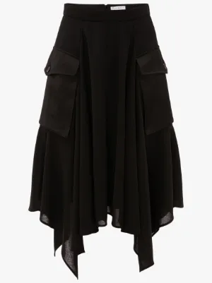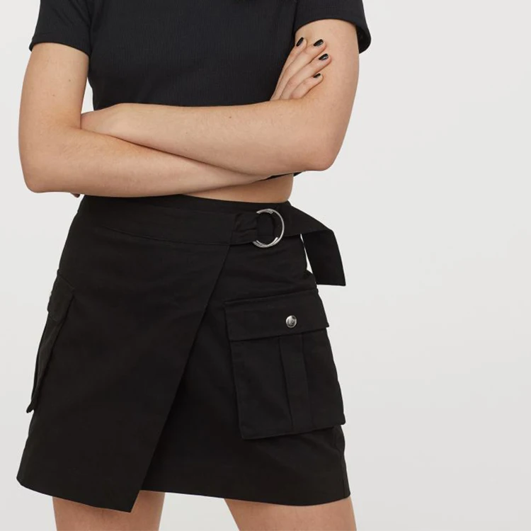 Cargo black skirt clearance, Asymmetric Cotton Twill Women Black clearance