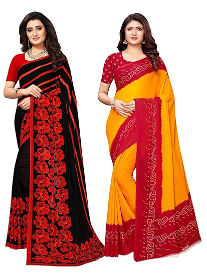 Amazon saree combo offer clearance, Printed Georgette Saree Combo clearance