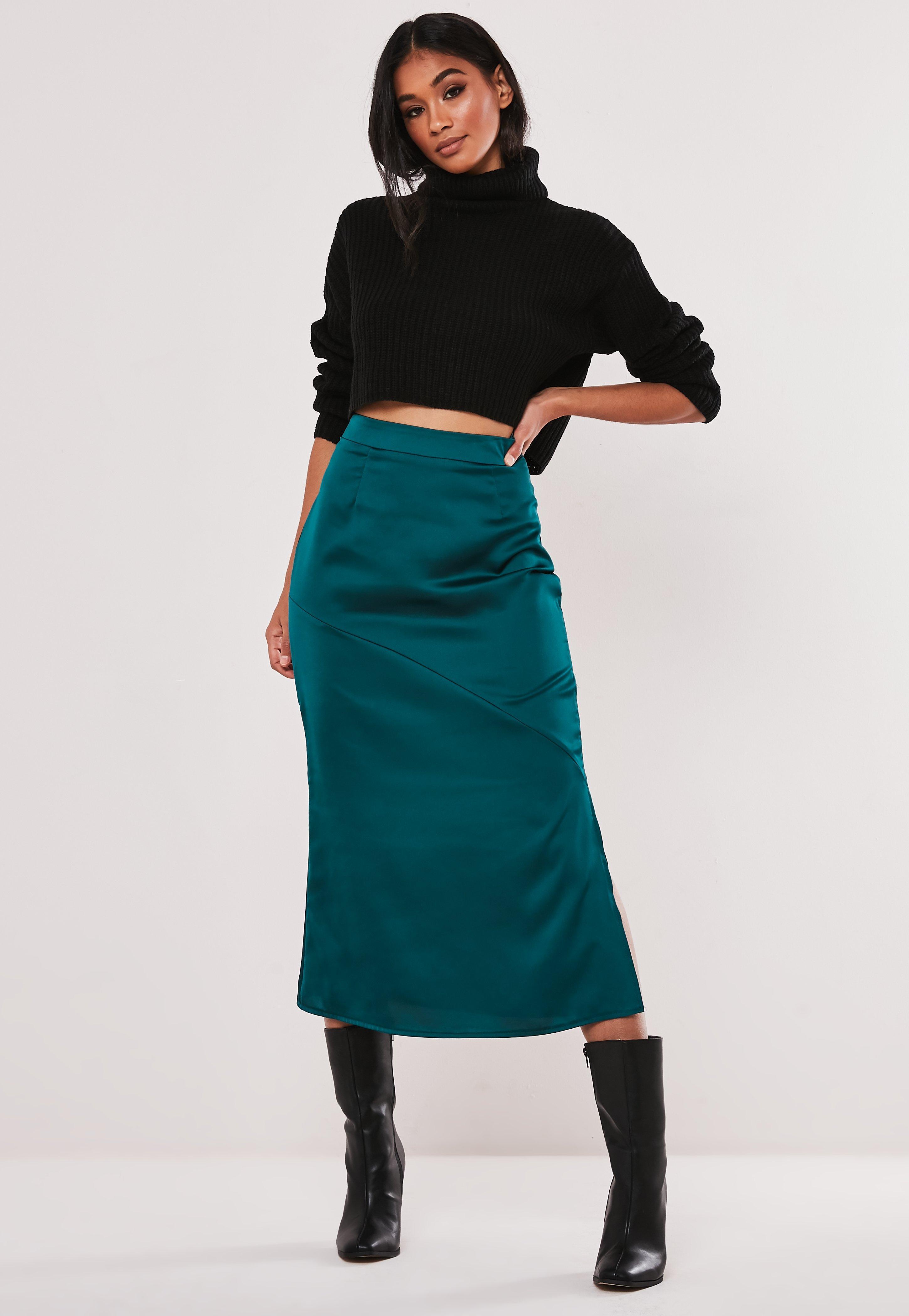 Teal satin skirt clearance