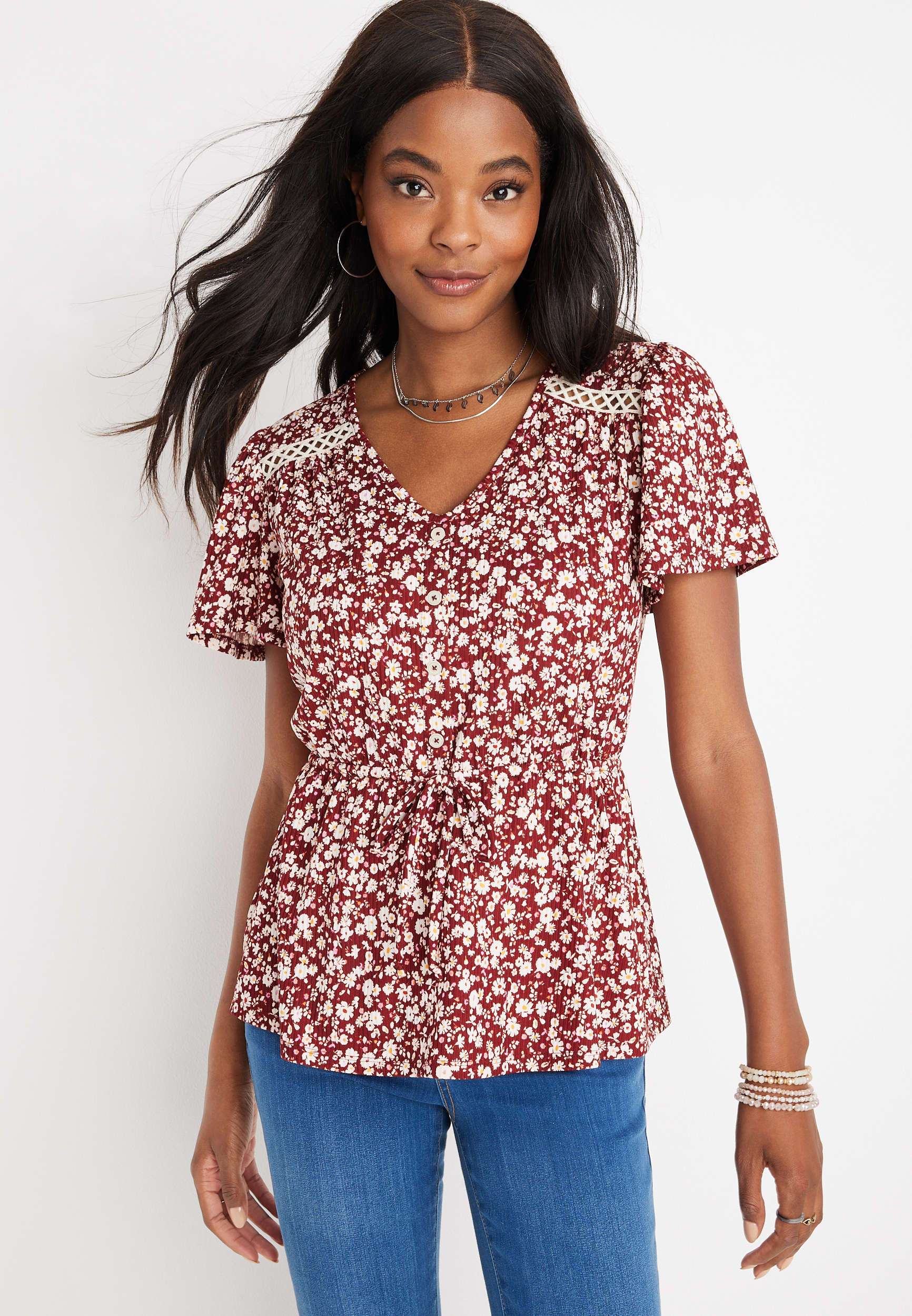 - Shopping Button front peplum top