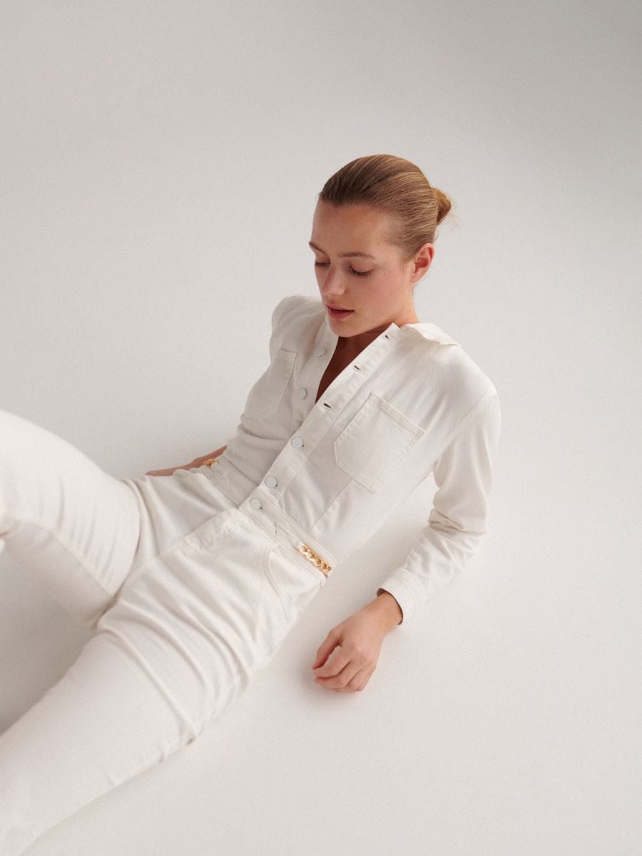 Cream denim jumpsuit clearance