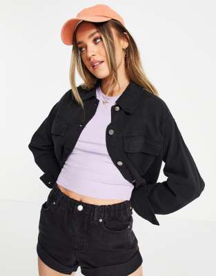 Monki cropped jacket clearance, Monki Linette cropped jacket in black clearance