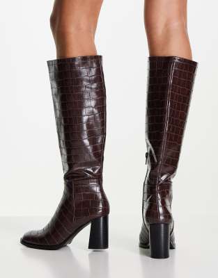 Miss selfridge knee high boots clearance, Miss Selfridge retro brown croc high clearance
