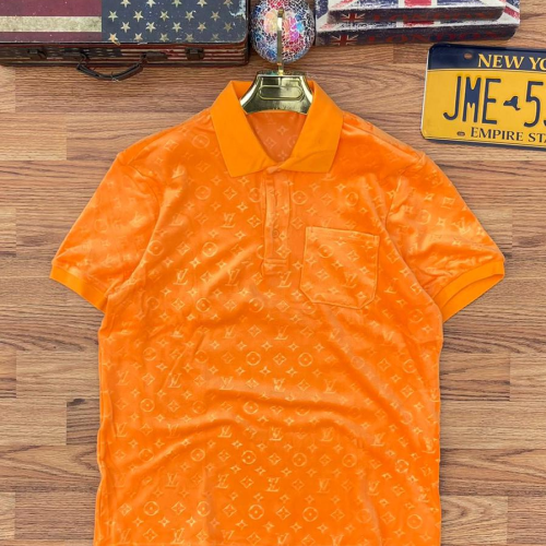 Louis vuitton t shirt orange clearance, Louis Vuitton Suede Collar neck Tee clearance