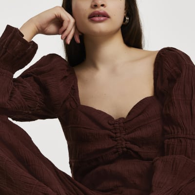 Brown long sleeve ruched top clearance, Sale | Clothes Sale at River Island clearance