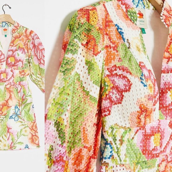 Farm rio colleen eyelet mini dress clearance, Anthropologie Farm Rio Colleen Eyelet clearance